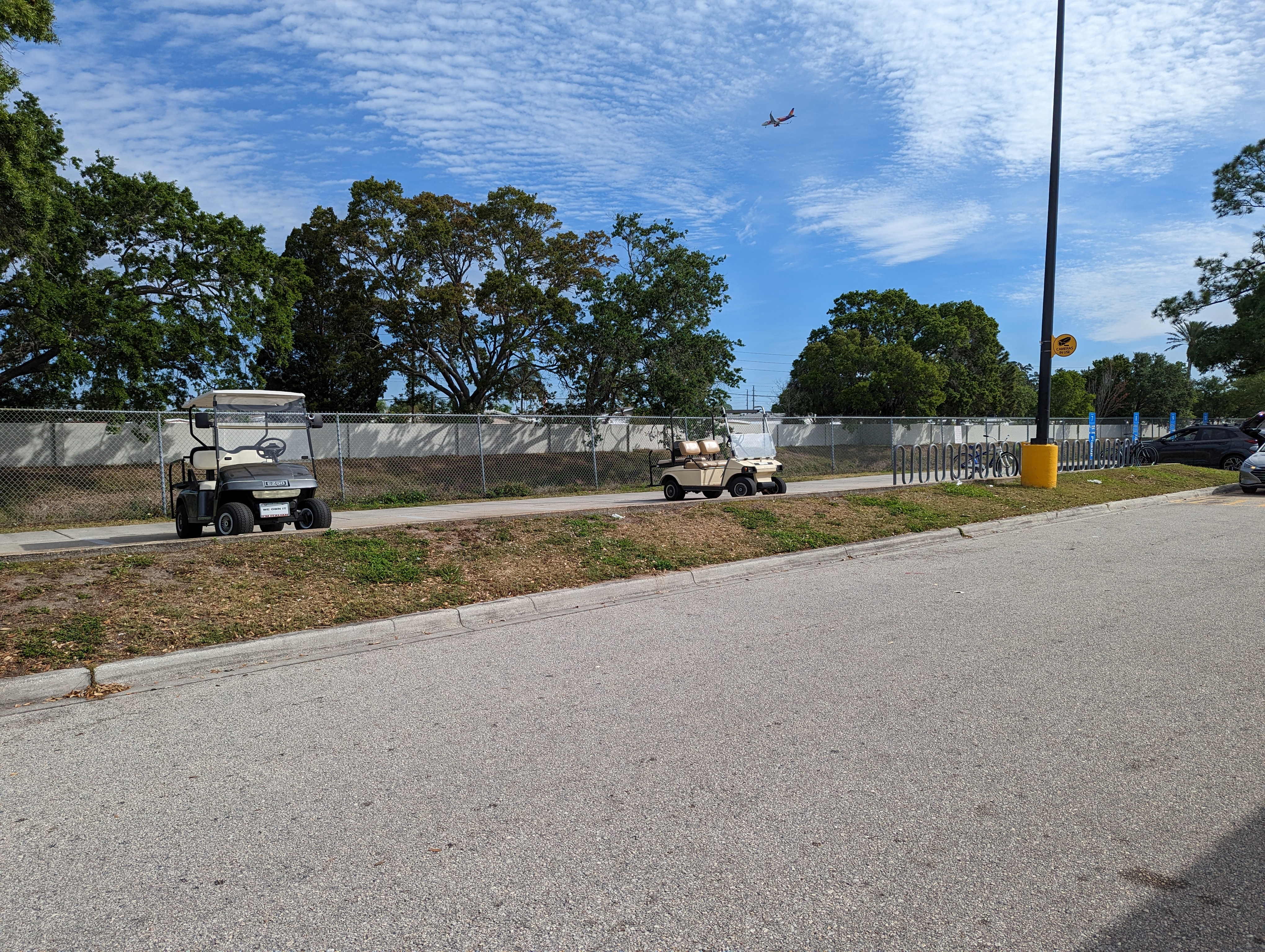 The 17th we then went over to Roberts RV Park to watch the St. Patrick's Fay Golf Cart Parade with our friends there. We visited for several hours afterwards and got home at 9:00 p.m. Upon arriving we found that we were locked out of the house. Neither of us had locked up. We rarely lock the place when we are just going to be gone for a few hours nearby. How the hell did this happen? Nothing to do but call a 24 hour locksmith. We were told he would be there in about an hour and a half. We could do nothing but sit in the car and wait. He arrived in little over an hour and in about ten minutes had the passage lock unlocked. While waiting we tried to figure out how this could have happened. I got a phone message that my Amazon order had been delivered. I looked in the door window and there it was on the steps. Proof that we didn't lock the door. All we could figure is the Amazon guy must have locked the door when he left. It is a passage lock where you turn the center button. It can't be locked by accident. While waiting we discussed the need to hide keys outside somewhere so we wouldn't be locked again. After paying $130.00 we were in and quickly to bed.